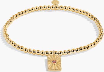 Gift gorgeously with the A Little 'Everything Happens For A Reason' Bracelet In Gold-Tone Plating from A Littles & Co. Created in gold-tone plating, this style features a beaded design to fit every wrist and is threaded with a gemstone-studded talisman heart charm. Wrapped around a stylized card, framed with a heartfelt poem, it's oh-so special!