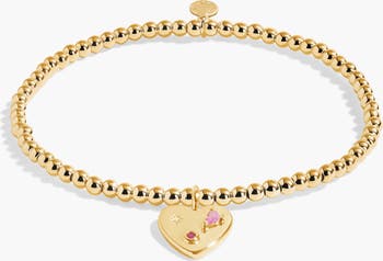 Gift gorgeously with the A Little 'Happy Girl Era' Bracelet In Gold-Tone Plating from A Littles & Co. Created in gold-tone plating, this style features a beaded design to fit every wrist and is threaded with a radiant gemstone-studded heart charm. Wrapped around a stylized card, framed with a heartfelt poem, it's oh-so special!