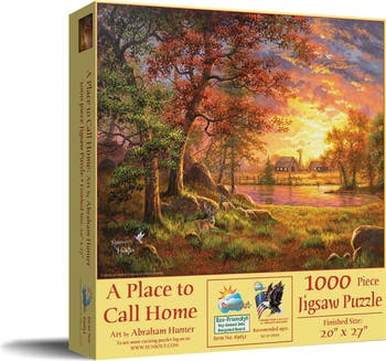 Introducing "A Place to Call Home 1000 pc Jigsaw Puzzle" by SunsOut, an artistic escape into a tranquil nature scene captured exquisitely by Abraham Hunter. This beautifully crafted puzzle is a perfect medium for relaxation or meditation as it features captivating hues of serene landscapes. Combining art and construction harmoniously, each piece of this 1000-piece puzzle fits into place seamlessly. The completed puzzle measures 20" x 27", offering a satisfying build experience. SunsOut is committed to excellence and eco-friendliness by making the puzzle from high-quality, recycled cardboard in the USA, with vibrant, soy-based ink, reflecting the brand's dedication to environmental stewardship. Customer satisfaction is a priority with SunsOut’s reliable warranty, ensuring any issues with missing or damaged pieces are promptly addressed. Experience nature's breathtaking beauty from the majesty of the artwork, bringing a sense of outdoor tranquility to your table. Ideal for nature lovers and puzzle enthusiasts, this puzzle provides an immersive experience of fulfillment. The "A Place to Call Home” puzzle evolves your pastime into a creative escape, offering a journey of relaxation and artistic appreciation that invites you to explore and enjoy.