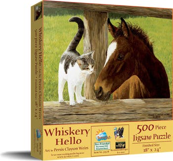Immerse yourself in the enchanting world of wildlife with the 500 Piece Jigsaw Puzzle from SunsOut Puzzles, featuring the serene and delicate imagery of acclaimed artist Persis Clayton Weirs. The harmonious interaction of cats and horses in a beautifully depicted nature scene provides a calming effect and offers a perfect escape into relaxation. SunsOut ensures a hassle-free puzzle-solving journey with excellently crafted, precision-designed interlocking pieces made from high-quality recycled cardboard. Echoing our commitment to nature, we use eco-friendly practices, including soy-based inks and recycled materials, to create each puzzle. Proudly made in the USA, SunsOut Puzzles uphold high manufacturing standards and offer a worry-free guarantee to resolve any potential issues. As a woman-owned small business, we take pride in our celebration of art, creativity and community, ensuring each puzzle serves as a passage between the artist’s vision and your enjoyment. Upon completion, the puzzle transforms into a striking 18" x 24" artwork, perfect for display and an ideal gift for any puzzle enthusiast. Dive into tranquility and enjoy the vibrant colours and peaceful imagery of this beautiful 500 Piece Jigsaw Puzzle for adults, designed to bring joy and serenity to your day.