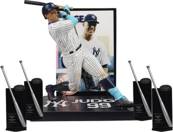 Aaron Judge (New York Yankees) MLB 7" Posed Figure McFarlane's SportsPicks. Box Set includes Silver Slugger replica trophies. Yankees Outfielder Aaron Judge made his MLB debut in 2016 and had a record-breaking rookie season. A six-time MLB All-Star, Judge was unanimously selected as the American League (AL) Rookie of the Year in 2017, broke Mark McGwire's MLB rookie home run record, and finished second in voting for the AL Most Valuable Player Award that year. Judge was also the first MLB rookie to win the Home Run Derby. In 2022, Judge set the AL record for most home runs in a season with 62, breaking the 61-year-old record held by Roger Maris and was named the AL Most Valuable Player.
