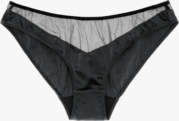 Lightweight and comfortable for everyday wear, The Aaron panty is a mid-rise, medium coverage panty combining shiny opaque silk charmeuse with sheer silk chiffon.