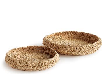 A species of banana, abaca is an upcycled, sustainable material. A very durable fiber, semi-bleached and varying in color, these baskets are French braided by skilled artisans. Created to be overscale for wide open spaces, this set is perfect for ottoman, console or side table.