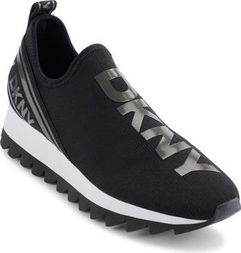 Eye-catching logos add unmistakable signature style to this sporty slip-on sneaker built on a ridged platform sole.