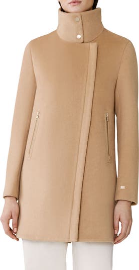 A stand-collar coat made from a toasty wool blend gets even cozier if you add in the detachable quilted bib insert.