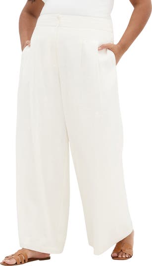 Tailored pleats and a breezy linen-blend weave define these wide-leg pants designed for effortless polish in warm weather. A back belt detail shapes the fit, while side-seam pockets add everyday utility.