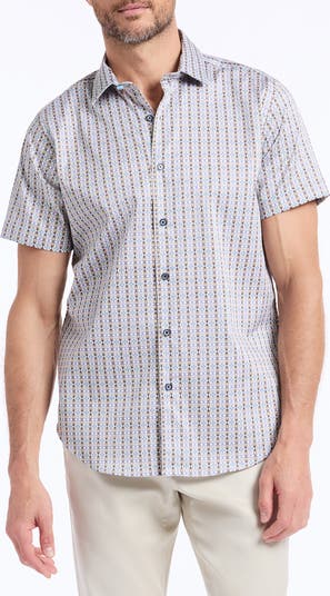 Designed for easy weekends, this classic button-up features an allover geometric print woven from soft stretch cotton.