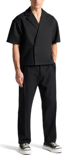 Meticulously designed with an open collar and relaxed fit, our Boxy Twill Double Breasted Shirt in classic Black embodies timeless style. The short sleeve silhouette adds a contemporary touch, ensuring its versatility in any wardrobe. Stay both comfortable and polished throughout the day.