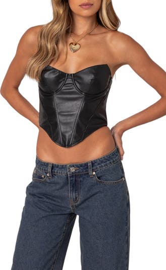 Aberdeen Faux Leather Strapless Crop Top