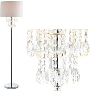 - Chrome floor lamp with crystal chandelier accents adds glamour to any space