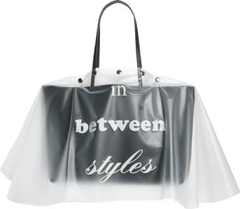Keep your most precious accessory protected even when you forget your umbrella with this transparent bag cover that's printed with playful text.