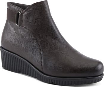 A side zipper and cushioned insole add luxe elements to a versatile leather bootie lifted by a subtle platform and integrated wedge heel.