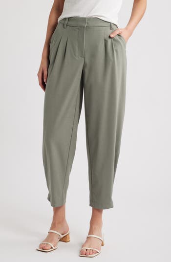 A trendy update to workday looks, these pants feature 'Ab'solution powermesh shaping panels and barrel legs that curve out at the knees and taper to the ankles.