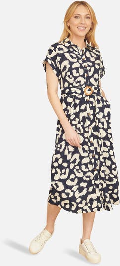 This supersoft abstract animal print, lightweight viscose dress is perfect for adding to your vacation checklist. In an elegant button up design, with a matching belt to elevate this style. The midi length and fitted waist are super flattering and easy to wear everyday, style with sandals or trainers in the sunshine.