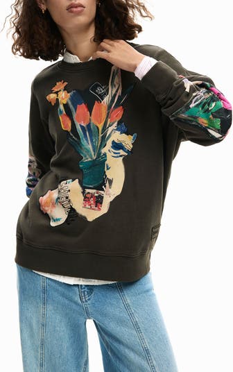 Touches of embroidery lend depth to the abstract floral design brightening this French terry cotton sweatshirt.