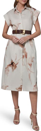 Abstract Floral Stretch Cotton Midi Shirtdress