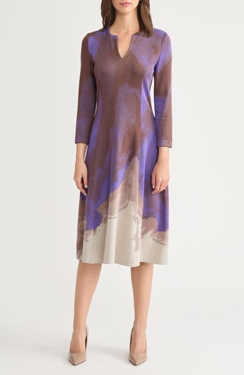 A dreamscape jacquard washes over a graceful A-line midi dress shaped by princess seams and made from a soft knit that moves with you. Bracelet-length sleeves frame the shapely look.