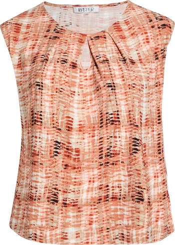 Soft pleats give texture and movement to this fluid sleeveless top fronted with an airy keyhole neck.