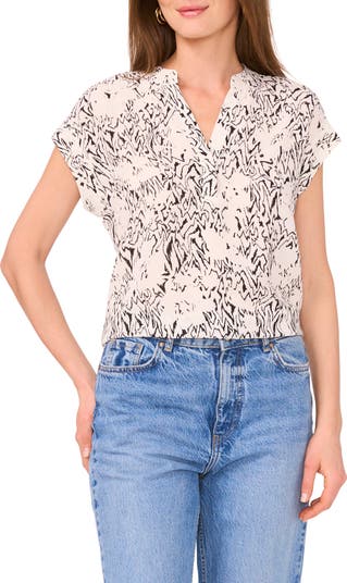 Build out your black-and-white collection with a lightweight top marked by a gently jazzy print.
