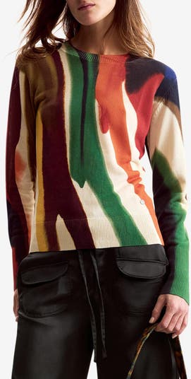 A fine-gauge knit means layerable style in this uniquely printed crewneck pullover that's a bold addition to your sweater-weather wardrobe.