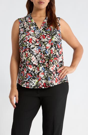 Ruffle cuffs and luminous buttons down the placket add charm and polish, respectively, to this knit top in an abstract animal print.
