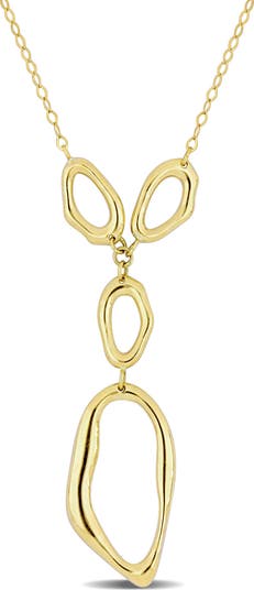 Jazz up your outfit when you wear this abstract drop necklace. Crafted in lustrous yellow gold, it features abstract geometric shapes forming a drop pendant. Enhanced with a high polish finish, coordinate this glittering gold necklace with any ensemble for a gorgeous look.