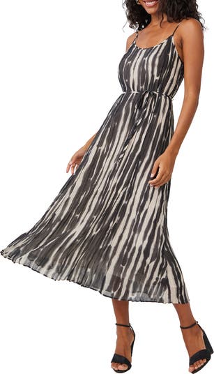 Build out your black-and-white collection with a summery dress textured in crinkled pleats and hung from slim straps.