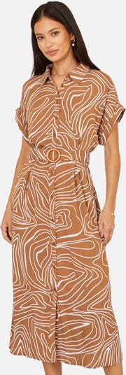This supersoft abstract Swirl print, lightweight viscose dress is perfect for adding to your vacation checklist. In an elegant button up design, with a matching belt to elevate this style. The midi length and fitted waist are super flattering and easy to wear everyday, style with sandals or trainers in the sunshine.