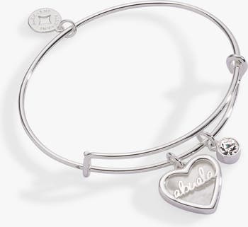 A bond like no other, now in Spanish with “abuela.” This expandable wire bracelet features a luminous Mother of Pearl heart charm with “abuela” delicately raised in metal overlay, alongside a sparkling crystal accent. Symbolizing care, calm, and connection, Mother of Pearl makes this a meaningful tribute to the love and guidance only a grandmother can give. Fits wrists 6"–8".