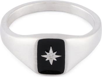 A cubic zirconia set against the black enamel on this classic signet ring symbolizes the brightness of hope even in the darkest places.