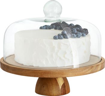 Megachef Acacia Wood Multi-Function Cake Stand with Glass Dome Lid, Main, color, Acacia