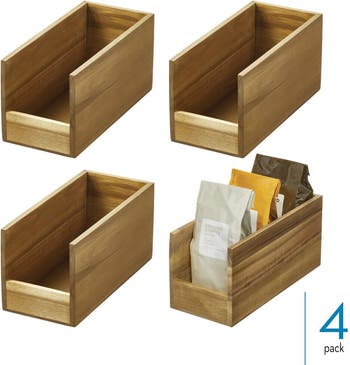 The iDesign Acacia Wood Narrow Open-Front Pantry Bin helps keep even the busiest spaces in order thanks to its convenient dimensions. Its wide, open front design makes it easy to retrieve stored items as well as offer instant label identification for easy, at-a-glance access. Made from natural acacia wood, these food-safe bins add warmth and style to your storage solutions while keeping items tidy and easily accessible. Use in multiples or alone to create order where you need it most. With iDesign, you can live simply every day.