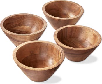 - Acacia wood serving bowl set made from natural wood measuring 2 inches in height and 4.5 inches in both length and width ideal for everyday use.