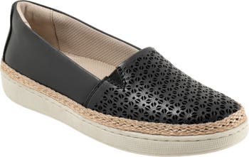 Laser-cut perforations add charm and dimension to an espadrille-inspired leather sneaker featuring a jute trim and classic rubber cupsole. Premium underfoot cushioning and built-in arch support offer lasting comfort.