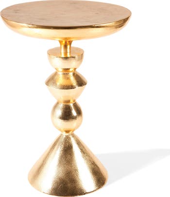 Built from elemental forms—three sphere like forms sandwiching a cone and top in solid metal -finished with a rosy bronze or gold finish —our Accent Table is a timeless classic. Perfectly proportioned for sprinkling throughout your home: beside a lounge chair , a sofa or between two slipper chairs. Each of our creations is designed in our San Francisco studio. Master craftsmen using centuries old technique of sand casting create the original mould and skilled artisans hand create every piece, with pride, in our family owned factory.