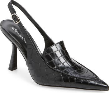 A slingback strap balances the loafer-inspired styling of a pointy-toe pump that takes you from 9 to 5 and beyond.