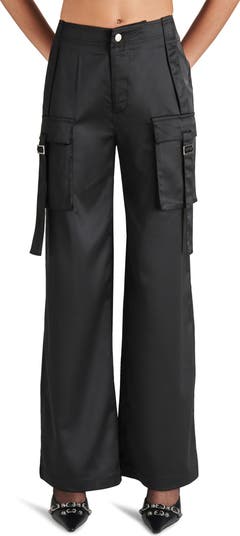 Lustrous, smooth satin playfully offsets the utilitarian allure of cargo pants fashioned with a plethora of pockets and strappy details.