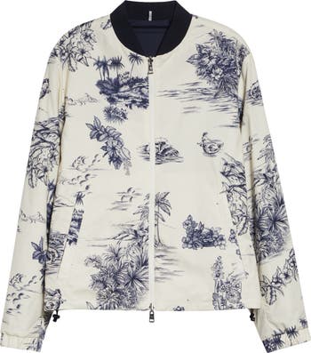 This reversible bomber jacket gives you two moods in one clean piece: a patterned look in crisp cotton poplin on one side, then a sleek matte face on the other with a smooth, cloudlike touch and high-contrast finishing. A streamlined two-way zip and adjustable edges keep the silhouette close, neat and ready to flex with the day.
