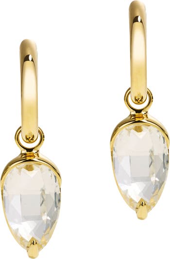 Teardrop stones bring a faceted glimmer to hoop earrings crafted from 14-karat gold.