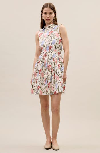 Soft florals and a fitted waist shape the feminine silhouette of this printed cotton shirt dress, finished with shell button closures.
