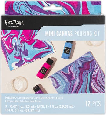 BREA REESE: ACRYLIC PAINT POURING KIT - HOLIDAY WALL ART - Transform your holiday decor with the Brea Reese Acrylic Paint Pouring Kit - Holiday Wall Art. This DIY kit makes it easy to create your own vibrant, one-of-a-kind wall art that captures the spirit of the season. No mixing needed, just shake & Pour! Ideal for artists of all levels, the kit provides step-by-step instructions and all the supplies needed to craft stunning artwork. Paint pouring is a relaxing, creative process that allows for spontaneous designs, making it perfect for celebrating the holidays with handmade decor. Paint pouring art kit INCLUDES 2 canvas boards, 4 pre-mixed paints, 4 cups, 1 project mat, and an instruction guide.