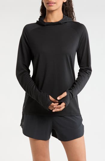 Made for comfort and performance, this sporty hoodie brings you the natural benefits of soft merino wool with the quick drying time of recycled polyester, plus the cooling properties of Tencel™ lyocell. Targeted mesh zones are designed to help increase breathability so you feel good throughout your workout.