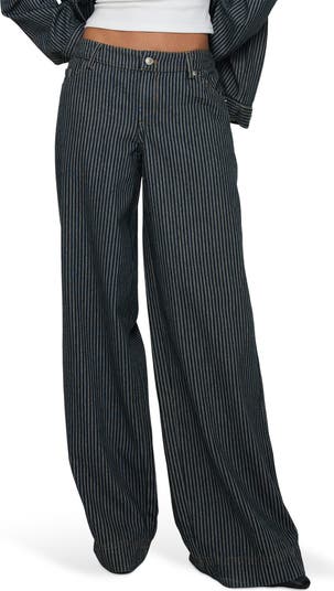Sophisticated stripes bring night-out-worthy style to these low-rise, full-length wide-leg jeans made from nonstretch denim.