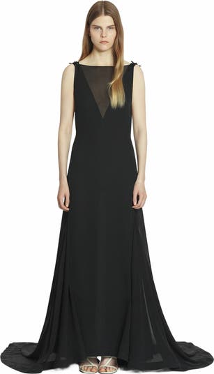 The embroidery on this evening gown is inspired by the works that Armand-Albert Rateau created for Jeanne Lanvin. Its full-length fall creates a memorable and very elegant silhouette.