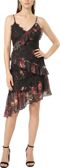 The Area Stars Adair dress combines modern flair with a flattering V-neck and tiered, asymmetric ruffle trims. Crafted with adjustable straps and a back zipper, it features a fitted silhouette that hits above the knee for a polished yet playful look. Perfect for daytime events or evening plans, this versatile mini dress brings refined style to any wardrobe. SIZE & FIT• True-to-size fit• Fitted at bust, waist, and hips• Designed to hit above the knee; approx. 36" length • Imported