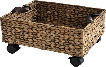 Adaline 18.11" Classic Farmhouse Handwoven Hyacinth Rectangular Underbed Storage Bin with Wheels and Handles
