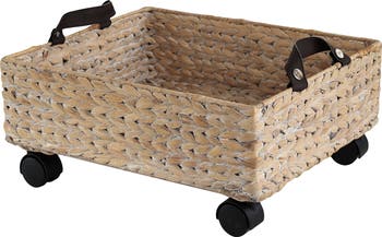 Adaline 18.11" Classic Farmhouse Handwoven Hyacinth Rectangular Underbed Storage Bin with Wheels and Handles