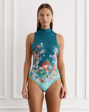 The Adaline One Piece offers both functionality and style. Featuring a high neckline and openback, removable cups and crafted in our decadent ribbed jacquard, the Adeline One Piece is a sculptural and modern staple. International Size Conversion: AU 8 = US 4 AU 10 = US 6 AU 12 = US 8 AU 14 = US 10 AU 16 = US 12 AU 18 = US 14