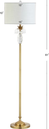 Inspired by the pineapple, the universal symbol of hospitality, the faceted crystal detail on this beautiful floor lamp takes an elegant twist on the quirky fruit's iconic shape. Perfectly paired with a crystal chandelier or flush mount for an opulent look, or standing in contrast with a contemporary interior, its versatility makes it a flexible addition to any interior. We love the way the light refracts through the crystal detail and gleams off the brass-plated metal.