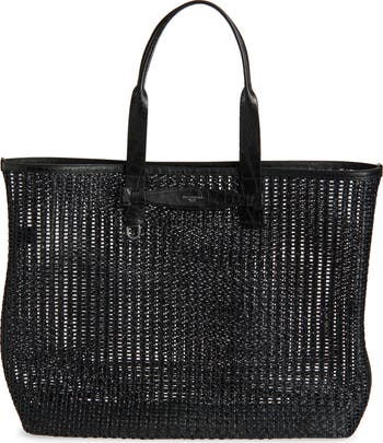 The clearly superior bag for a weekend of shopping or just getting away, this woven-mesh shopper is slim yet spacious and features a croc-embossed leather base, side handle and shoulder straps.